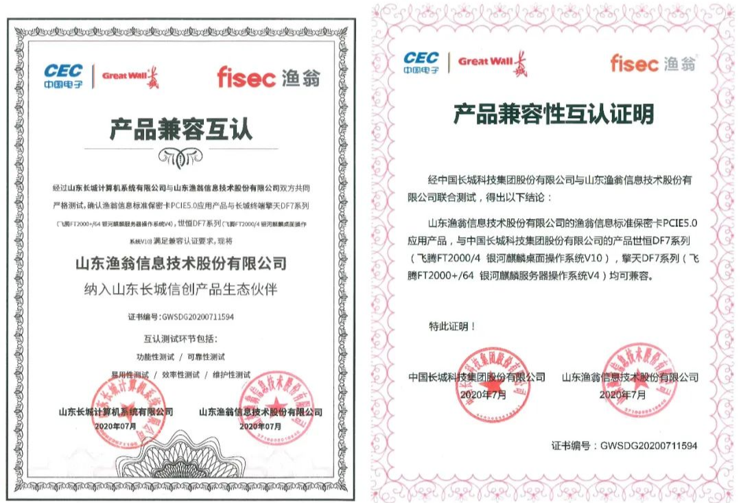 从功能性、可靠性、易用性、效率性、维护性五大环节,凯发k8国际信息与长城进行了严格的联合测试。最终确认凯发k8国际PCI-E 5.0密码卡与长城终端产品——世恒DF7系列(飞腾FT2000/4 银河麒麟桌面操作系统V10),擎天DF7系列(飞腾FT2000+/64 银河麒麟服务器操作系统V4),满足兼容认证要求。并且,凯发k8国际信息此次成为了长城信创产品生态伙伴,携手构建安全新生态。